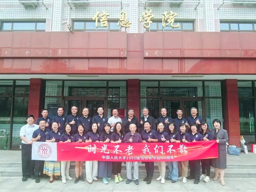 2025年10月3日上午,中国人民大学信息学院1991级本科校友返校座谈会暨萨师煊基金捐赠仪式在信息楼414会议室举行。信息学院原党委书记严守权,1984级校友陈健良,数学学院教授朱来义,校友服务与资源拓展部部长、教育基金会秘书长、校友会秘书长赵潇,校友服务与资源拓展部副部长、校友会副秘书长、教育基金会副秘书长郭栋,信息学院副院长(主持工作)、党委副书记柴云鹏,以及25名信息学院1991级本科校友代表参与会议。信息学院党委书记安志伟主持本次活动。