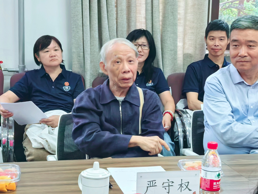 严守权讲述了萨师煊、陈余年等大先生对学院发展的历史贡献,回顾了与校友们在学院共度的美好时光,为校友们在各自领域取得的成就感到自豪,并期待大家继续关注和支持母院发展。