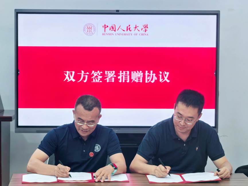 郭栋与1991级校友代表滕龙共同签署捐赠协议