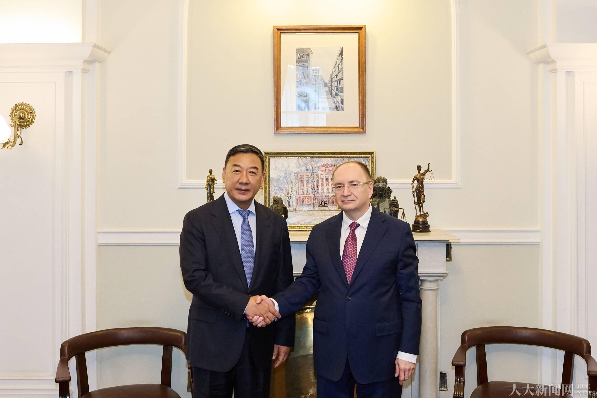 访问期间,张东刚还与中国驻俄罗斯大使张汉晖会面,围绕中俄高等教育合作进行深入交流。