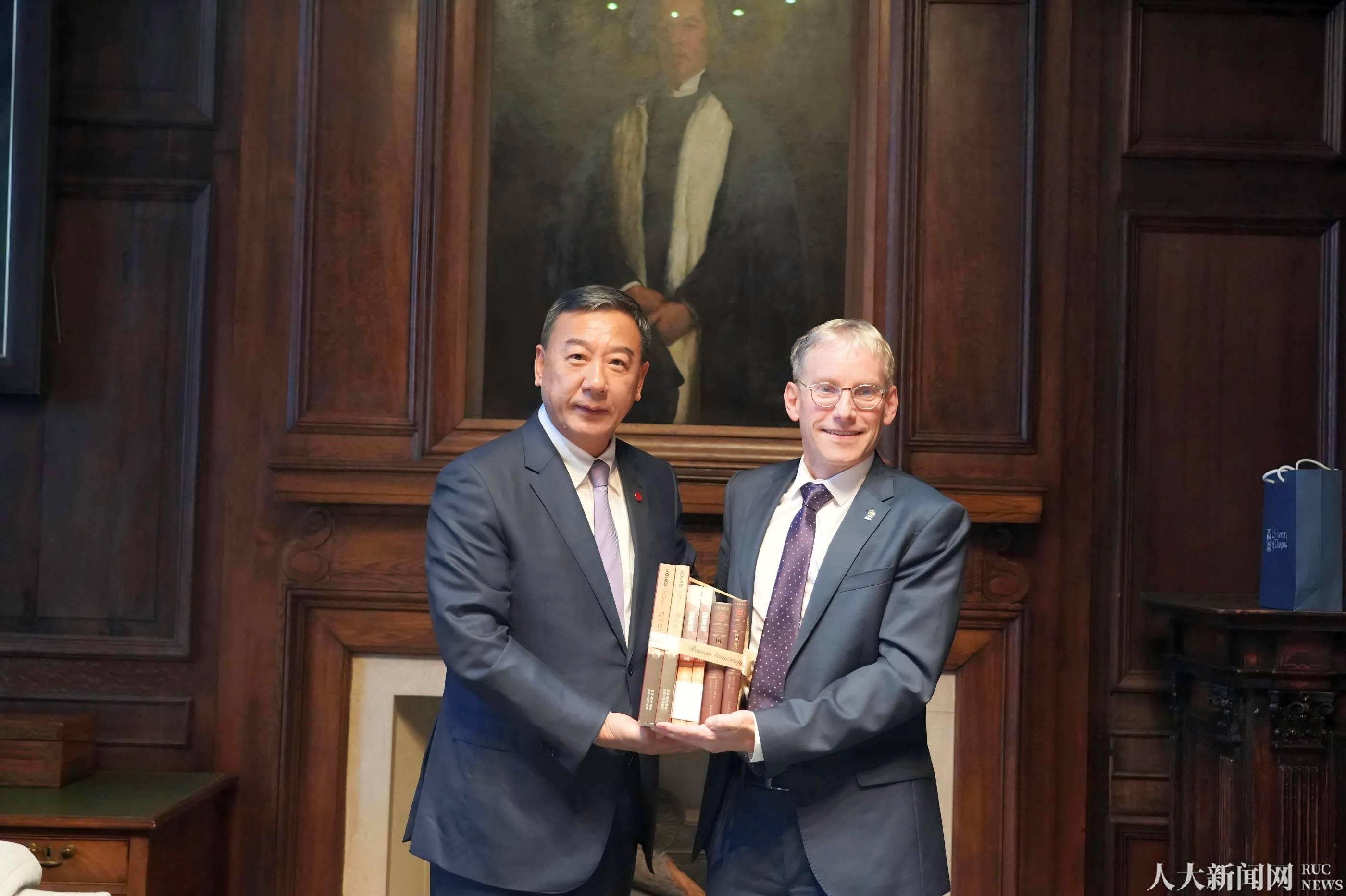 11月12日下午,张东刚访问格拉斯哥大学,会见校长安迪·斯科菲尔德,并代表学校向格拉斯哥大学赠送《国富论》严复译本、贾拥民译本以及杨敬年先生于九十高龄完成的译本三种中文版本的书籍。张东刚表示,期待与格拉斯哥大学基于双方优势学科,拓展学生交流和联合培养项目,聚焦人工智能发展中的全局性、战略性、前瞻性治理问题深化合作,围绕经济发展、人工智能与数字治理等重大命题和前沿领域开展协同攻关,建立常态化交流机制与成果共享平台,携手打造中英高等教育文明对话的示范性项目,为推动多元文明共生发展、构建人类命运共同体贡献学术智慧。