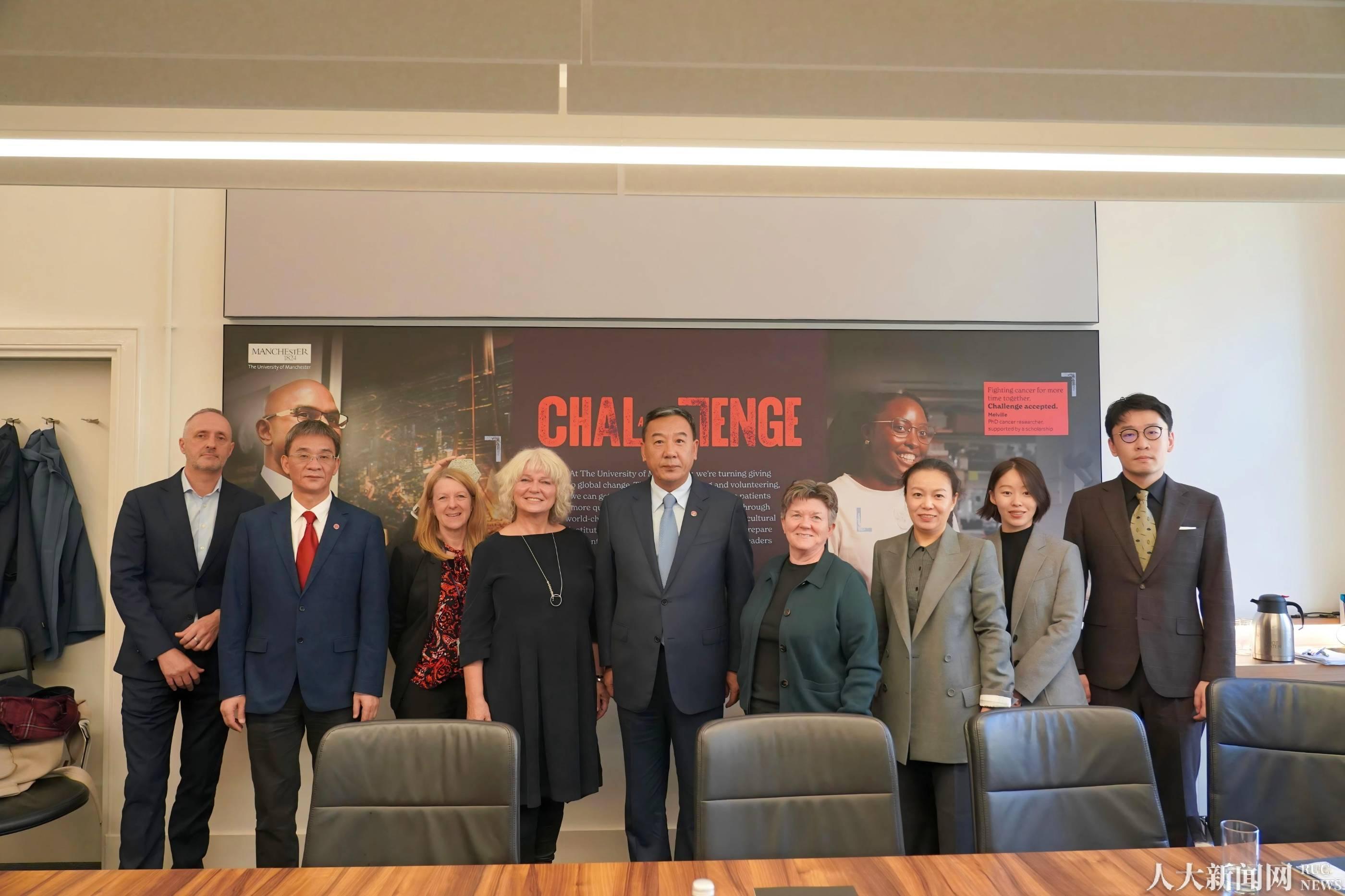 11月13日上午,张东刚访问曼彻斯特大学,会见副校长科莱特·费根。张东刚表示,两校合作历史悠久、关系紧密,在教育资源共享、人才联合培养等方面具有广阔空间。期待与曼彻斯特大学在良好的合作基础上,进一步加强交流合作,携手推动学生交换、学科合作等方面取得新进展,为构建人类命运共同体提供坚实人才支撑,为世界和平与发展注入强大正能量。科莱特·费根表示,曼彻斯特大学与中国人民大学通过互派学生、开展联合研究等方式,增进了两校师生对彼此国家和社会的了解。曼彻斯特大学愿推动双方在科研合作、人才培养等方面进一步拓宽合作广度,构建多层次、全方位的合作机制,推动双方合作伙伴关系不断走深走实。