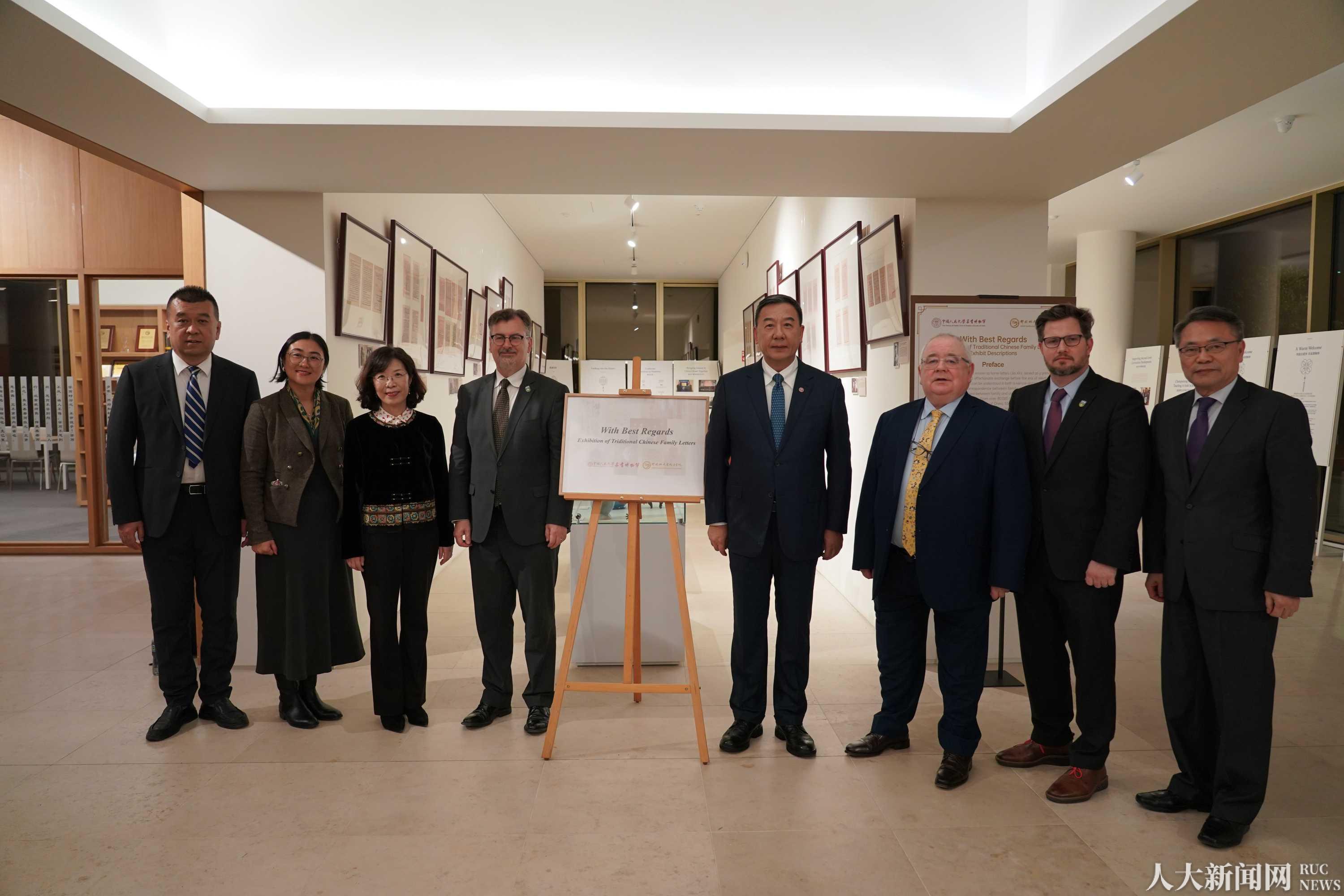 在2025世界中文大会召开前夕,11月10日下午,由中国人民大学家书博物馆与爱尔兰都柏林大学孔子学院共同主办的“此致,敬礼——中国传统家书展”在爱尔兰都柏林开幕。中国人民大学党委书记张东刚,都柏林大学常务副校长柯林·斯科特,爱尔兰国会议员、前众议长肖恩· 奥法尔盖尔,中国驻爱尔兰大使馆代表以及两校师生和各界嘉宾出席开幕式。张东刚表示,将中国传统家书展带到爱尔兰,不仅是落实两国领导人共识的务实举措,还是持续探索以人文交流推动中爱互惠战略伙伴关系走深走实的积极行动。本次展览从中国人民大学家书博物馆馆藏家书中精选展品,集中呈现中国家书文化的独特风貌,吸引众多中外观众驻足参观。与会嘉宾认为,家书展以书信为媒搭建起中爱文化交流新平台,有助于赓续两国人民相知相亲的友好传统,为中爱文明交流互鉴注入新活力。