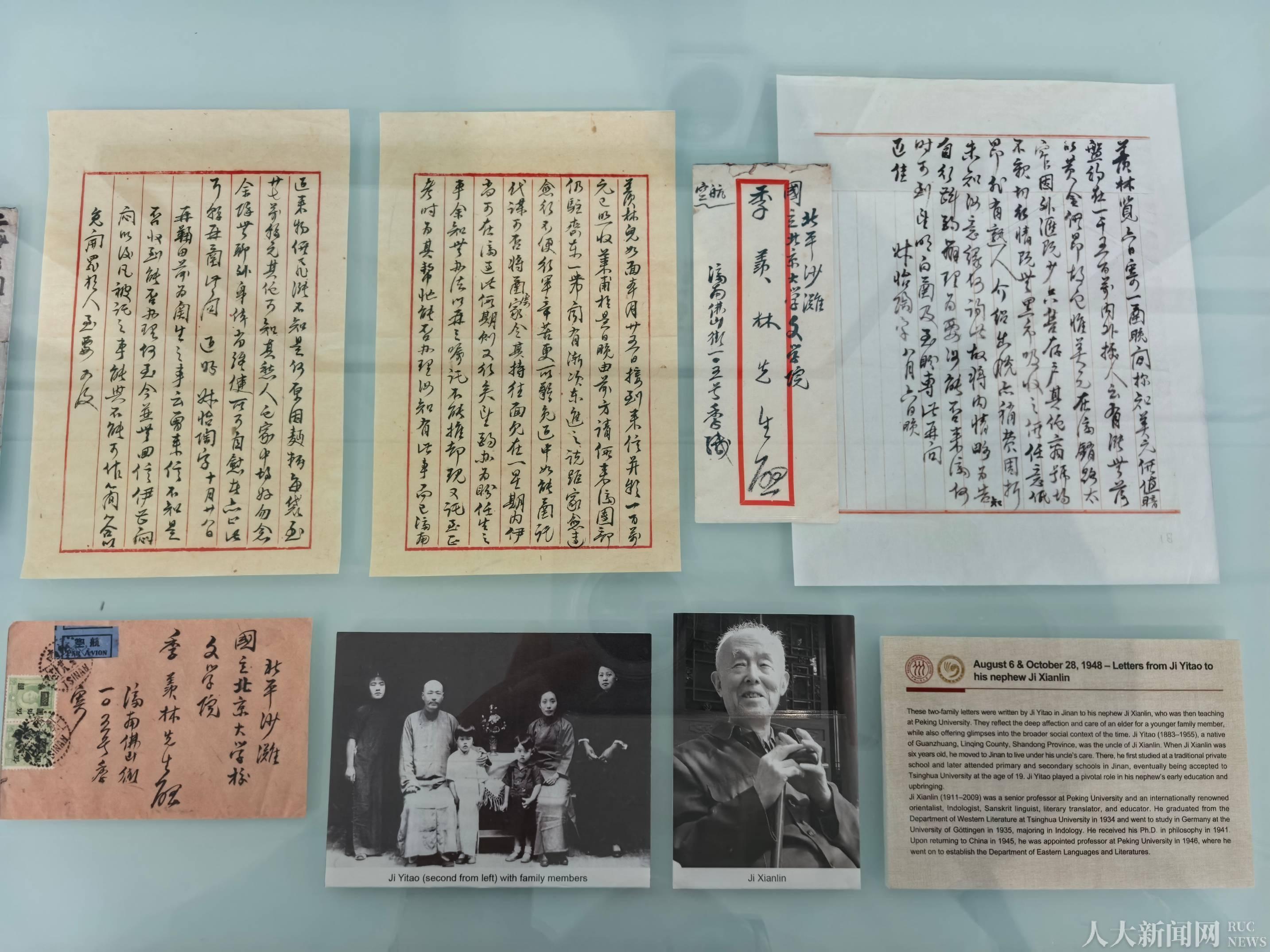 中国人民大学家书博物馆副馆长张丁向中外来宾介绍展品及其背后的故事。此次展出家书的作者,既有曾国藩、李鸿章、康有为、陈独秀、梁启超、任鸿隽等名人,还有不同时期的军人、普通民众。虽然他们的社会身份各不相同,但都是家庭中的一员,把所见、所闻、所感诉诸笔端,向亲人尽情地表达关爱、感恩、思念、歉疚等复杂的情感,留下了可资回忆的原始档案。这些家书不仅记录了各自不同的家事,也折射了当时的历史环境,多阶层、多视角呈现了一个多世纪以来不同时期中国家书的风貌。