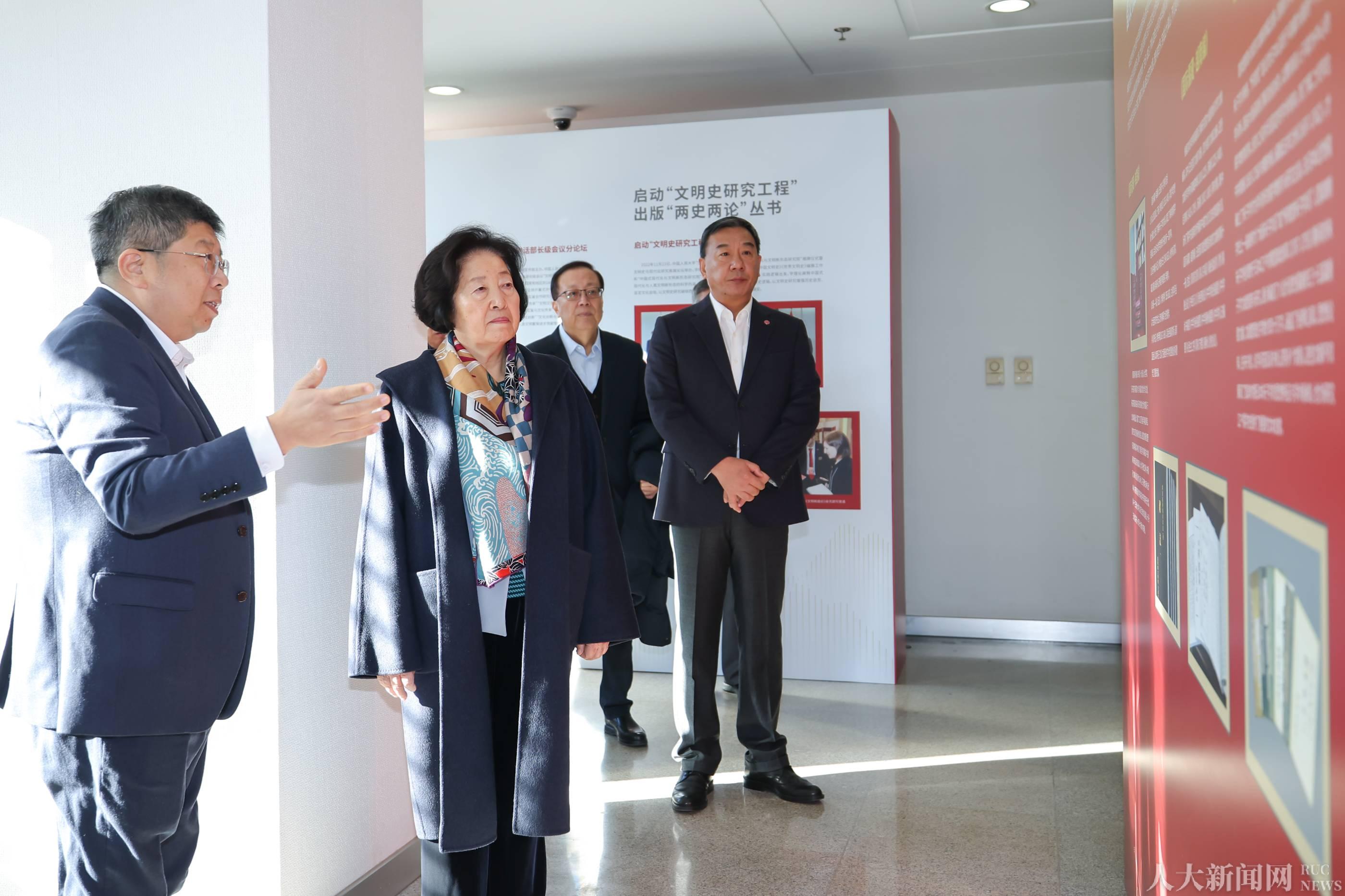 在中国人民大学图书馆,孙春兰出席专家座谈会。认真听取发言后,孙春兰指出,近年来,中国人民大学牢记习近平总书记的政治嘱托,勇担党中央赋予的光荣使命,自觉传承红色基因,在学科建设上主动作为、在自主知识体系建构上勇毅担当,各项事业展现出蓬勃发展的生动气象,为服务强国建设、民族复兴作出了积极贡献。她特别指出,中国人民大学在中华优秀传统文化传承弘扬、文明交流互鉴领域锐意开拓,深入推进《国际儒藏》编纂和研究,谋划并实施“文明史研究工程”,推出“两史两论”丛书,提出“全球文明交流互鉴合作研究计划”等,充分展现了学校在服务文化强国建设中的担当作为。