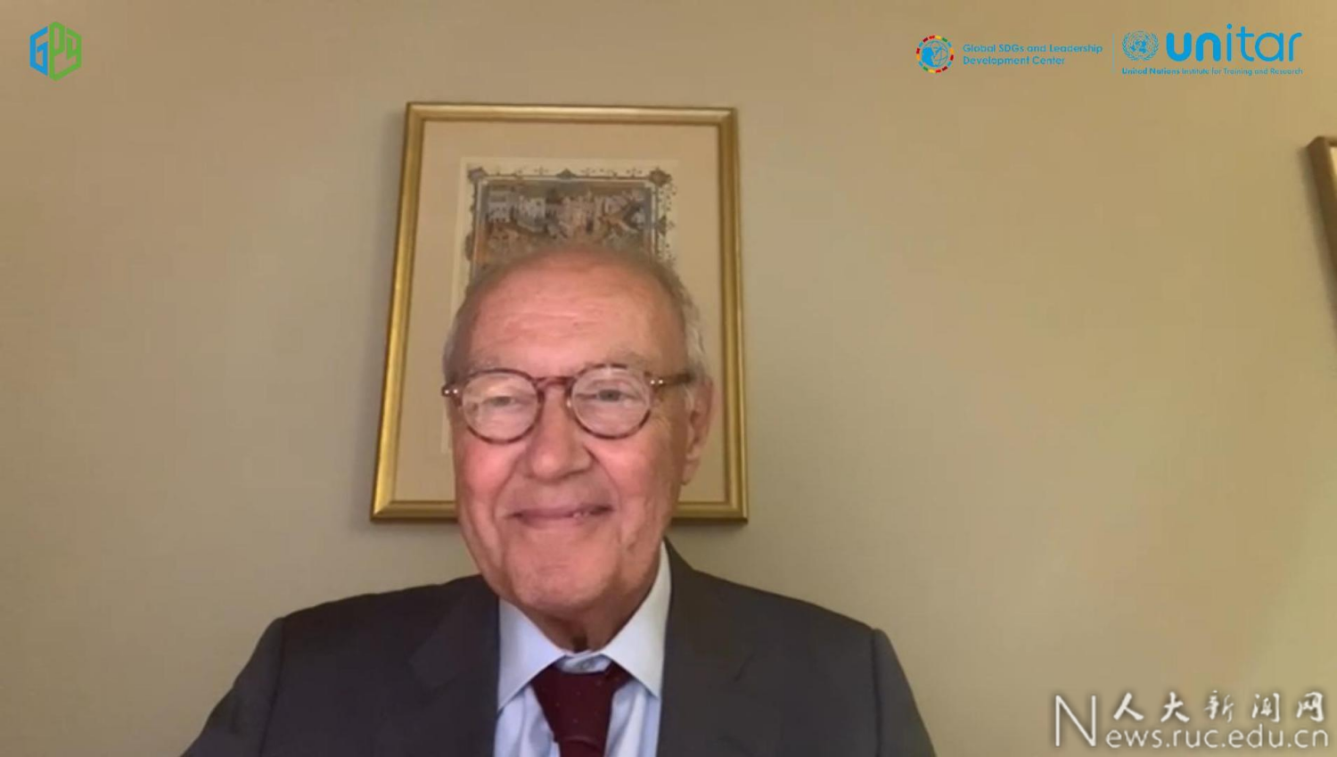 联合国可持续发展目标与领导力发展中心学术委员会联席主席弗朗西斯·高锐发表视频致辞,联合国粮食及农业组织驻华代表卡洛斯,国家发展和改革委员会党组成员、国家粮食和物资储备局党组书记、局长刘焕鑫,中华全国青年联合会主席徐晓,中国日报社副社长朱宝霞,中国人民大学党委书记张东刚出席并先后致辞,中国人民大学校长林尚立主持。共青团中央国际联络部副部长刘凯,国家粮食和物资储备局外事司副司长张艳,中国人民大学常务副校长朱信凯,党委副书记、副校长王易,党委常委、宣传部部长高燕燕出席。