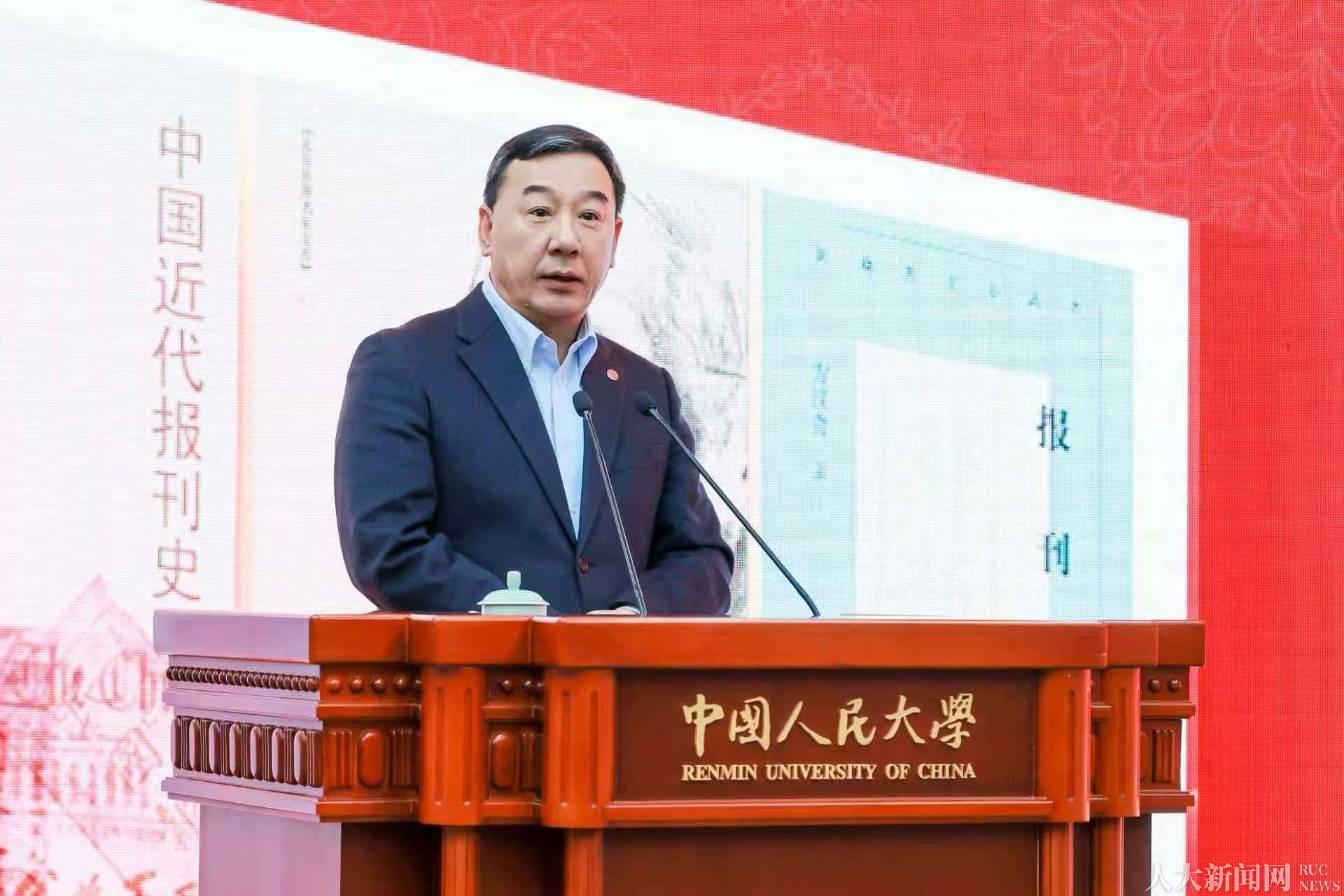 中国大百科全书出版社社长、党委书记高世屹向中国人民大学赠送百册《百年求真——方汉奇自述》图书,并在致辞中向方汉奇先生表达感恩与敬意。他表示,在人大新闻学院求学时,“方汉奇先生是所有新闻学子仰望的学术丰碑与人生楷模”。他深情回顾了方汉奇先生与百科社四十余年的深厚渊源,高度赞誉方汉奇先生作为我国新闻史研究泰山北斗的学术精神与人格风范。